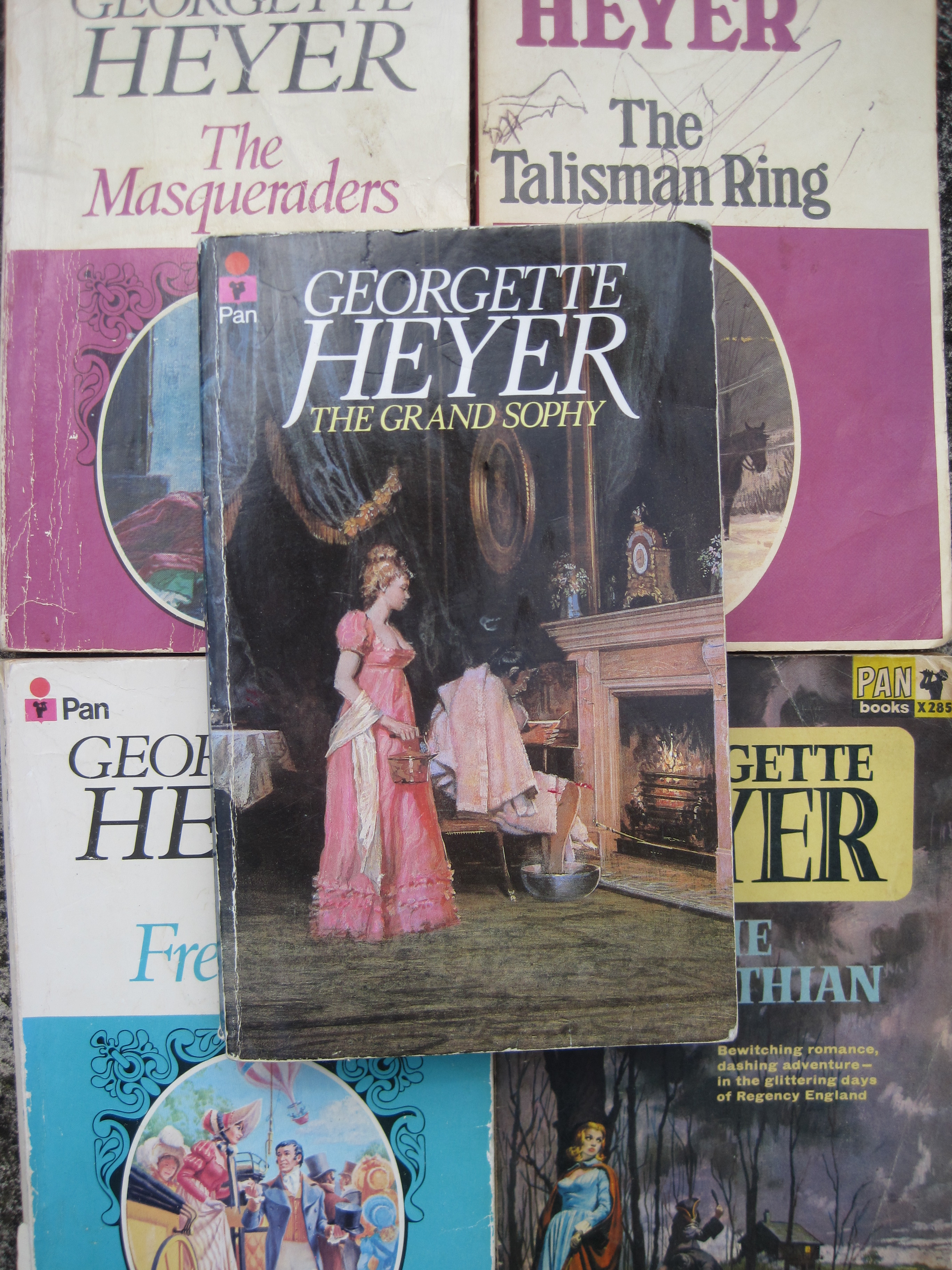 My mum had a shelf of Heyers on the landing the whole way through my childhood, but it was only when I was about 16 that I first picked one up (either False Colours or Cotillion, I can’t remember which) and that one led to another, which led to all of the ones she had and then to buying the ones that she didn’t. When my parents moved house a couple of years ago, mum passed them on to me as she “didn’t have space for them” any more, on the understanding that she could borrow them back if she wanted and that I wouldn’t get rid of them. Since then though, rather than borrowing them from me, she’s started re-buying them!