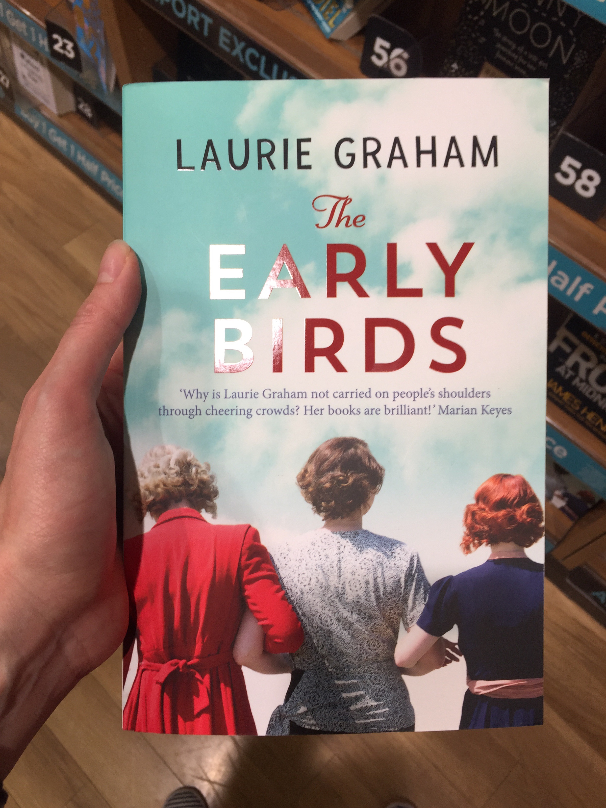 You should be able to get a copy of The Early Birds from all the usual sources – like The Big Green Bookshop and the like – but you may need to order it. IIt’s in hardback at the moment – but there’s a large format airport paperback as demonstrated in the photo! And of course it’s also available on Kindle and Kobo. Future Homemakers of America is also available on Kindle and Kobo – and new and second-hand copies can be found on Amazon (I think it may be out of print as it’s showing as out of stock everywhere else I search).