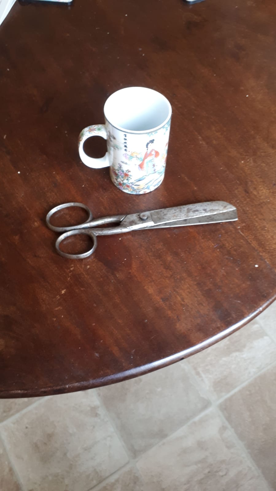 Bonus photo: My mum found my grandpa’s nail scissors being pressed into use this week to cut twine in the garden, and there is a family joke about them never being used for their proper purpose. It made me laugh last week, so here is a photo my mum took of them, with a mug for scale.