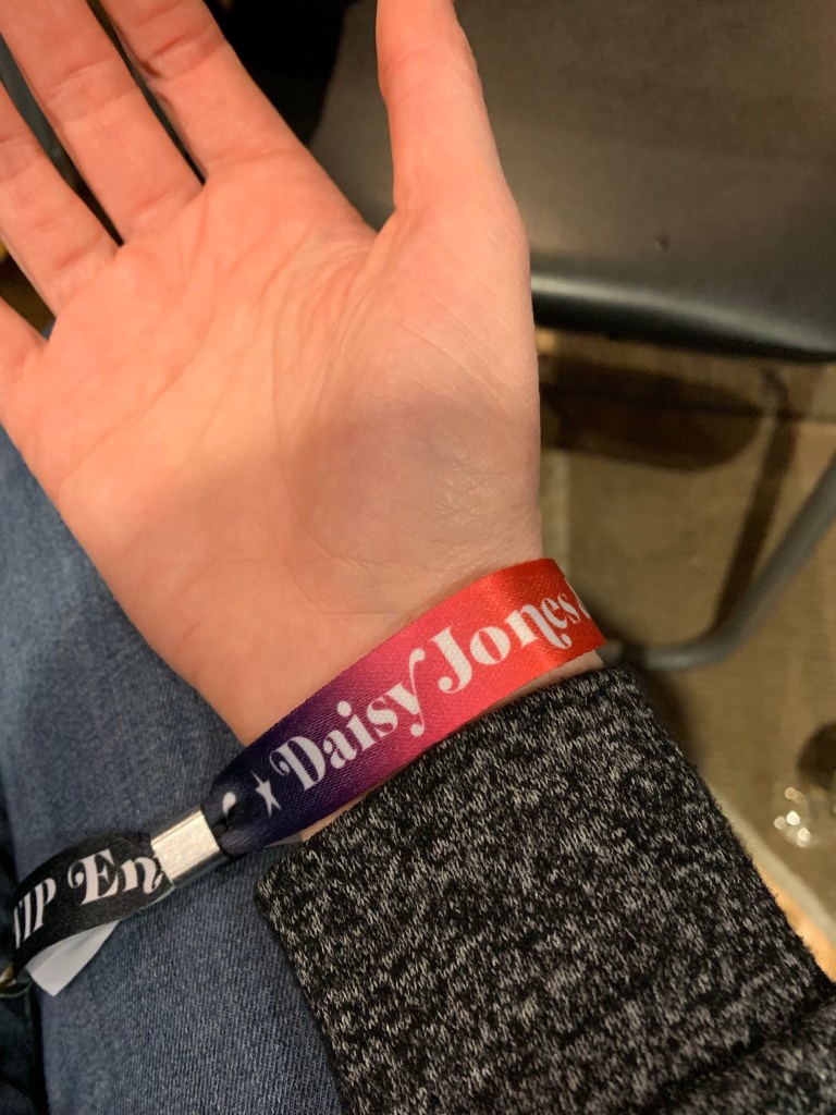 I do sort of love the idea that it’s the TJR universe and that the people in her books could run into each other. But that’s because I love it in romance series where you get to see the couple from the previous books pop up and being happy! Anyway, I suspect that this time if there is a tour it may be in a slightly bigger place – and again, I’ll happily pay money for it – especially if there’s a chance of getting some weird merch with it – the fake festival bracelet I got for Daisy is on one of my shelves next to my home office desk – along with my collection of bookish badges and postcards and the like.