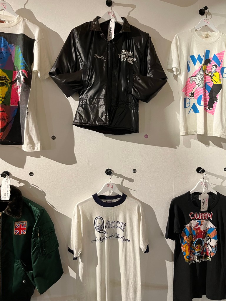 And basically every other outfit you’ve ever seen him wear on stage, in a video or at a public appearance. The only exceptions I can think of are the yellow jacket from the Wembley 86 tour and the harlequin leotards. But everything else is here. The “prawn” costume from Its a Hard Life, the leather jacket from Radio Gaga, the suits from Barcelona and Great Pretender, the winged cat suits. The cat waistcoat.