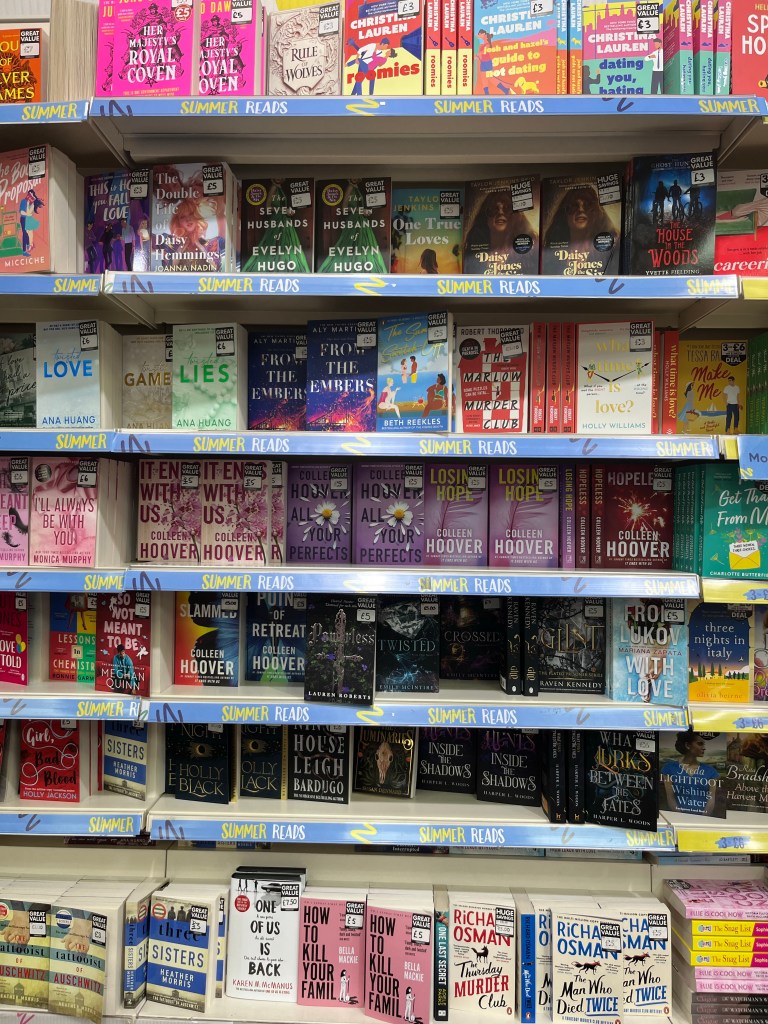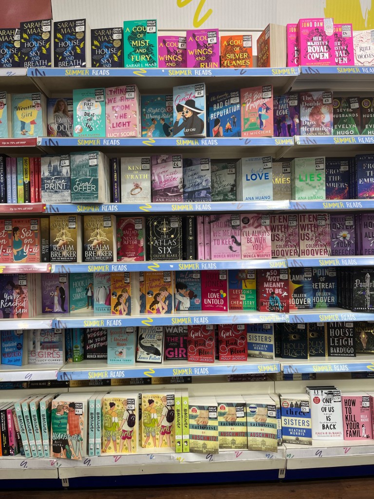 Slightly less here, but still a good group – although now we’re out of the 3 for £6 group. There’s one of my favourite books of last year – Lessons in Chemistry – which I recently loaned to a colleague who loved it – and two Ali Hazelwoods Love Theoretically and The Love Hypothesis. I’ve read all of the Heartstopper – not long now for the final part – but I haven’t (yet) got into Sarah Jane Maas (although I have a friend who loves her), or Elle Kennedy or Lucy Score (or Colleen Hoover on the last shelves) and I had a bad experience with my first Tessa Bailey so I know she’s not for me – although (again) I know people who love her.