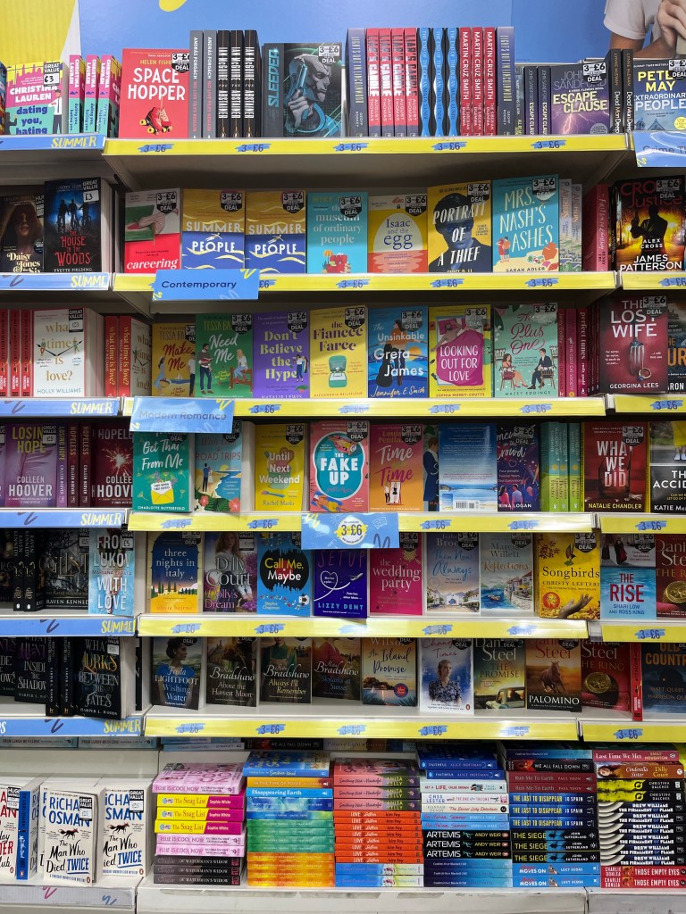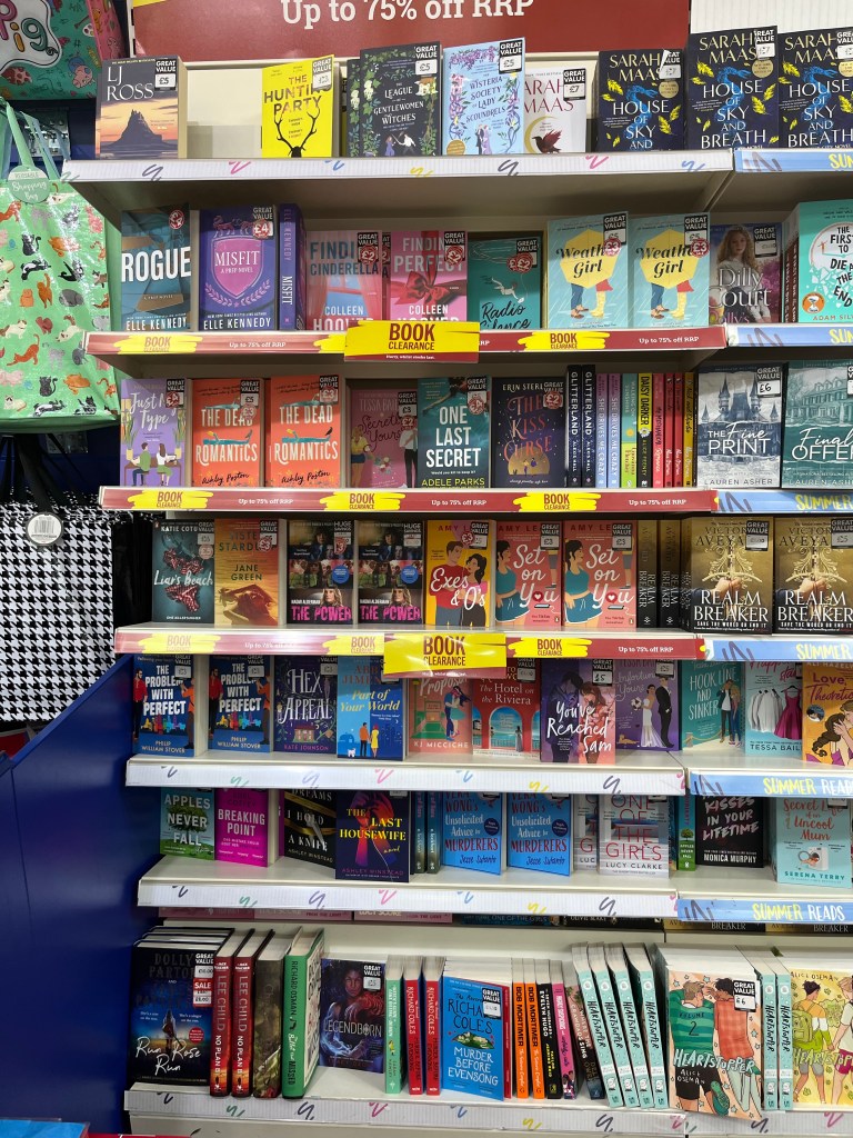 Slightly less here, but still a good group – although now we’re out of the 3 for £6 group. There’s one of my favourite books of last year – Lessons in Chemistry – which I recently loaned to a colleague who loved it – and two Ali Hazelwoods Love Theoretically and The Love Hypothesis. I’ve read all of the Heartstopper – not long now for the final part – but I haven’t (yet) got into Sarah Jane Maas (although I have a friend who loves her), or Elle Kennedy or Lucy Score (or Colleen Hoover on the last shelves) and I had a bad experience with my first Tessa Bailey so I know she’s not for me – although (again) I know people who love her.