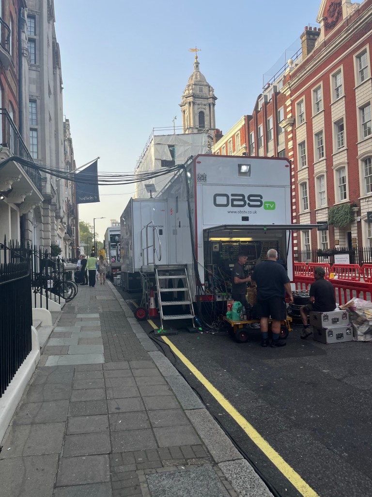 Bonus photo: the Outside Broadcast trucks outside Sotheby’s for the big first evening of the Freddie sale, as I walked past on the way down to Waterstones Piccadilly.