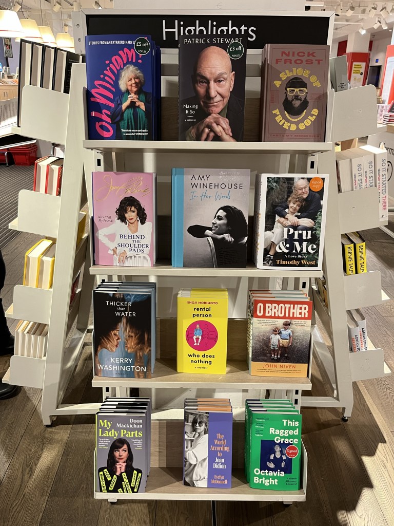 I’m going to call this the celebrity memoir selection, even if they’re not all celeb memoirs! Anyway as well as the Patrick Stewart, we have another from Miriam Margoyles, plus Nick Frost, Timothy West, Kerry Washington, Joan Collins and Doon Mackichan. I may have flicked through the picture sections of several of these!