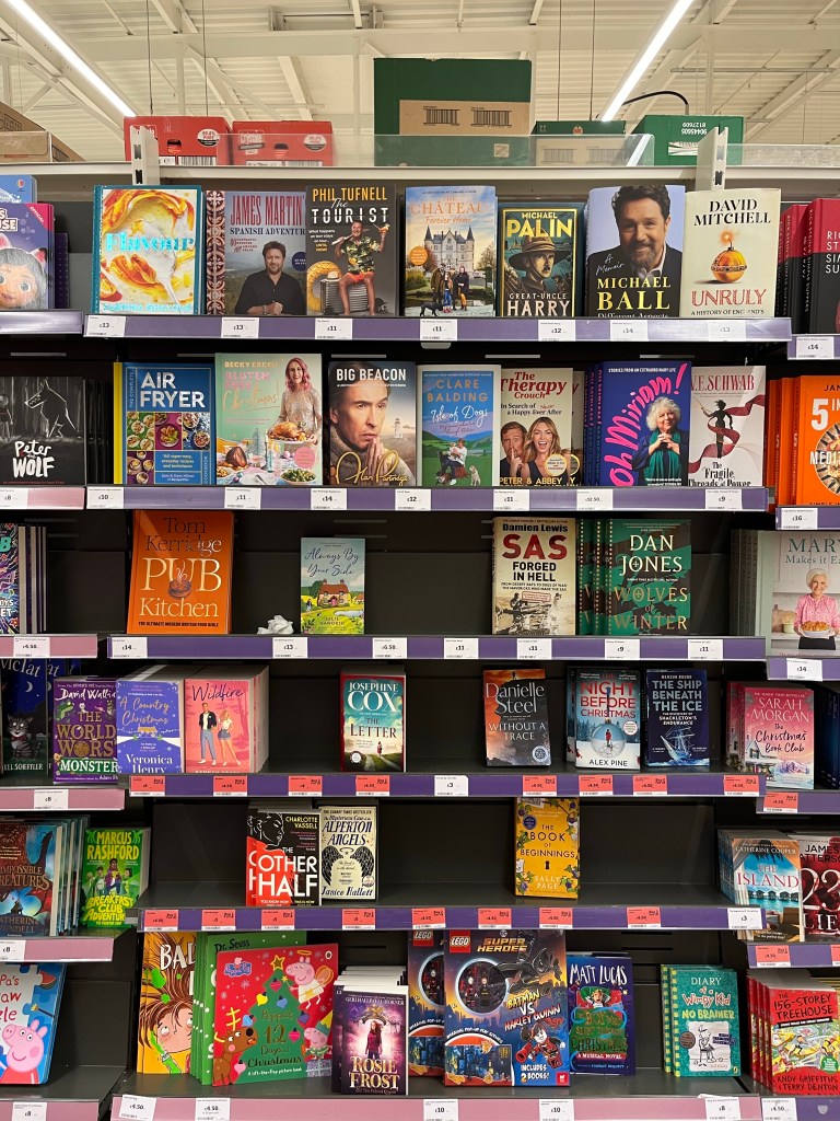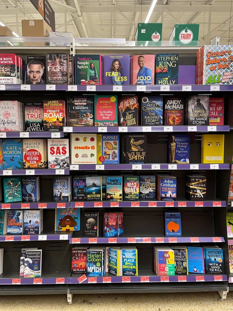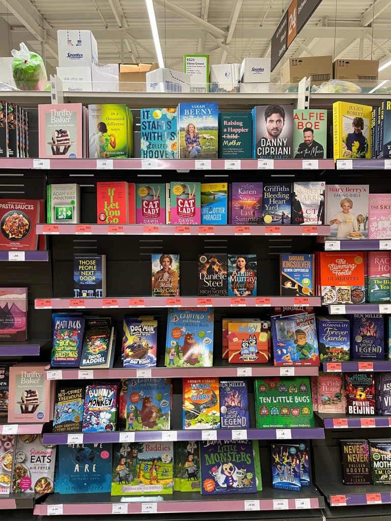 The next shelf was a bit patchy, so I’m skipping it, but you can see the interesting bits in the edges of this photo and the last one – so Tomorrow, and Tomorrow, and Tomorrow and the S J Parris on the last picture and the Mary Berry baking book on this one! Finally, right down the end her we have some Colleen Hoover (because is it even a book selection without her at the moment!) plus a few more of the high selling, long running favourites. And then there’s the kids books obviously!
