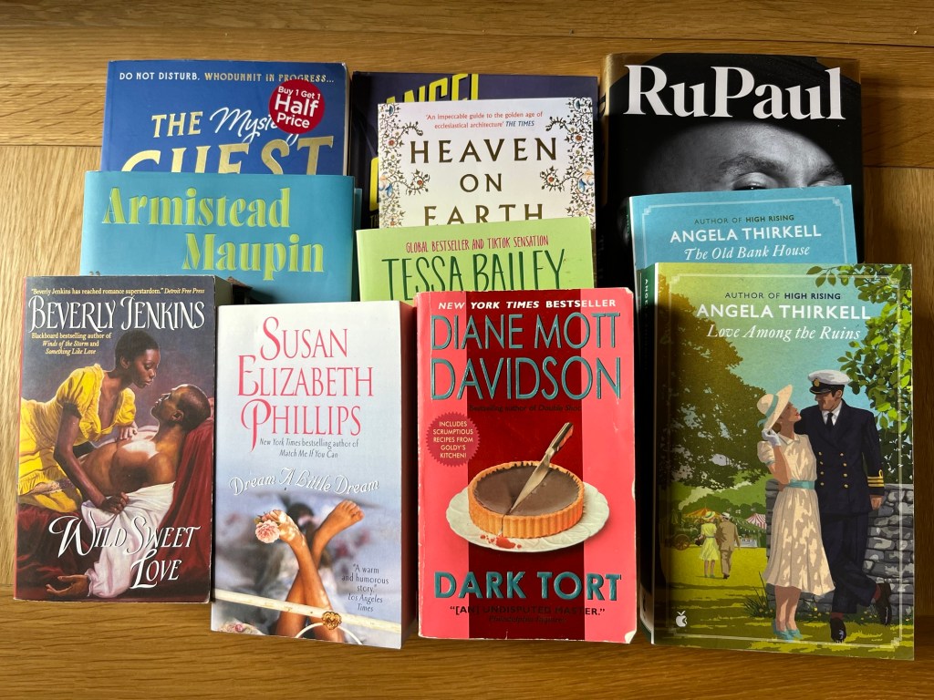Half of this post is preorders of new releases – the RuPaul (which is signed!), the Armistead Maupin and the two Angela Thirkells – as Virago appear to have decided to release some more, which is going to mean another rearranging of the bookshelves! Then we have the airport purchases on the war to the Philippines – the Nita Prose sequel to The Maid and the new Tessa Bailey because I was intrigued by the idea of a golf romance!