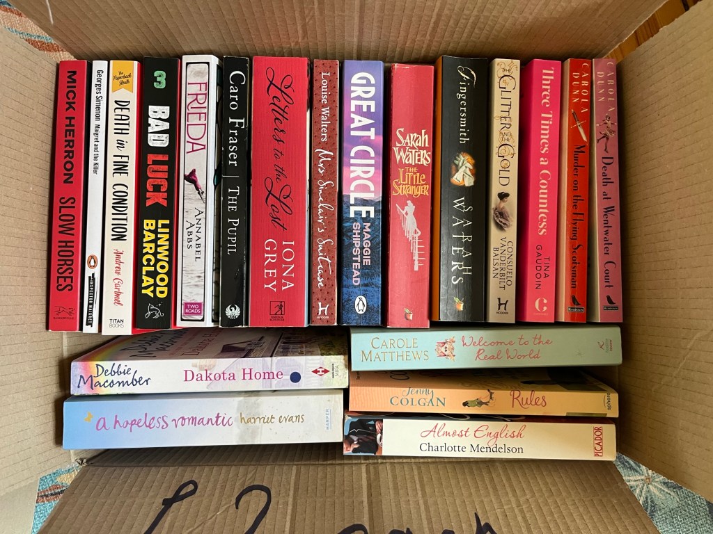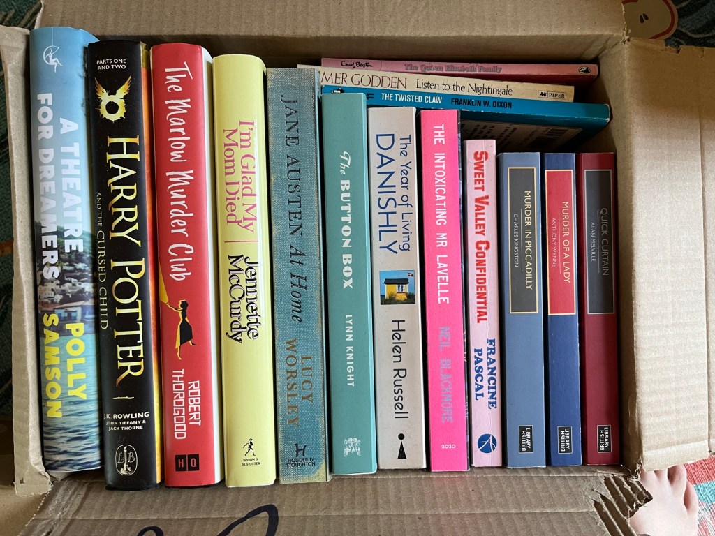 And then this is mostly crime, with a touch of literary fiction and some women’s fiction. There is another box, also of girls own, but I forgot to get a phot! I’ve priced them to sell as they say with an aim of not bringing too many home with me, especially as I expect to buy a fair few…