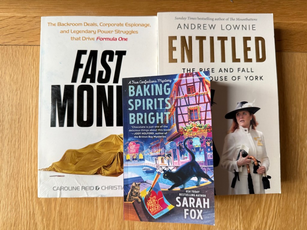 Genuinely I’m quite pleased with me this month. Honestly, I am. So all we have on the pile this month are my airport purchases – Entitled I’ve already read and is off the pile and Him Indoors is still reading Fast Money, so I haven’t got to that yet. I’m hoping it will be as interesting as The Formula was last year. Baking Spirits Bright is the sequel to Six Sweets Under which inexplicably dropped in price the other week and which I picked up to tick off Vermont in *next* year’s 50 States challenge. And then finally there is one missing from the photo which was an impulse purchase in Market Harborough this week but I managed to leave it in a bag in my parents car and haven’t got it back yet. It’s a new-to-English book by the author of Days at the Morisaki Bookshop, called Days at the Torunka Café, and they had a signed edition, so how could I possibly resist. I’m mentioning it now because it would be cheating not to, and there’s no guarantee I won’t forget it next month. I also bought a Spot book, but that wasn’t for me so it doesn’t count!