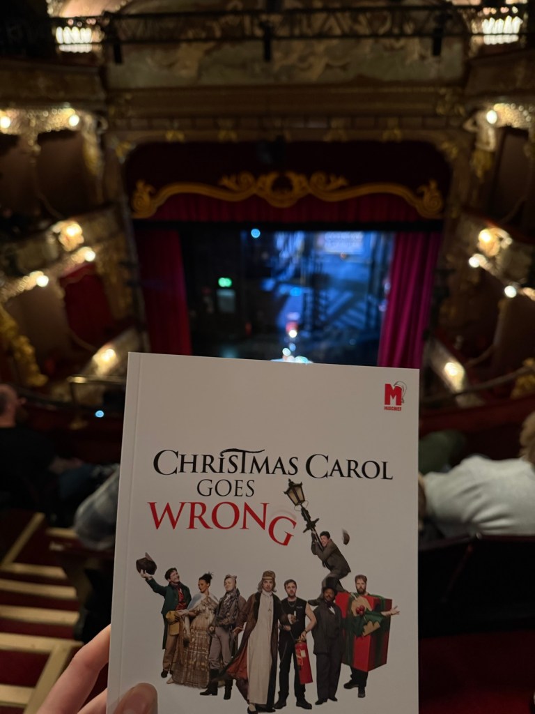Christmas Carol Goes Wrong is the latest show from Mischief Theatre and the third stage outing for their Cornley Drama Society characters following The Play that Goes Wrong and Peter Pan Goes Wrong. Unlike those previous shows, this has scenes that aren’t part of the production which fills out the world and also enables some new and different twists to the Goes Wrong formula. This is important as you don’t want things to get stale, but also because Mischief did a version of A Christmas Carol on TV a few years back.