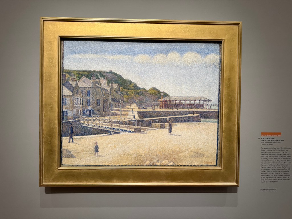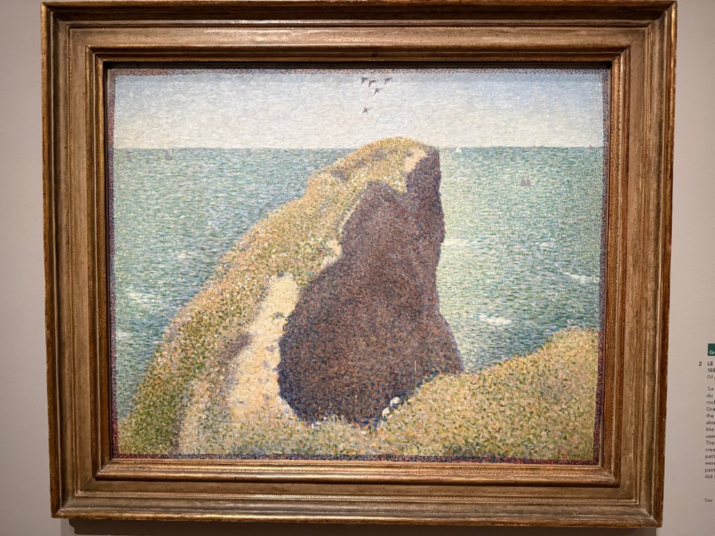 Georges Seurat’s most famous paintings are Sunday Afternoon on the Island of La Grande Jatte and Bathers at Asnieres. I’ve never seen the first which is in Chicago, but the second lives at the National Gallery and I will go and look at it every time I visit. In Washington back in 2018, I went to the National Gallery of Art where they have a selection of his works and wandered around that. So it’s no surprise that I would be very excited to go and see the first dedicated exhibition of his seascapes which is on at the Courtauld at the moment.