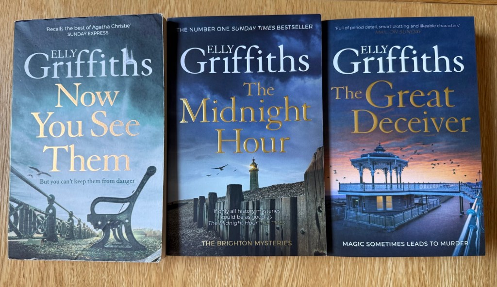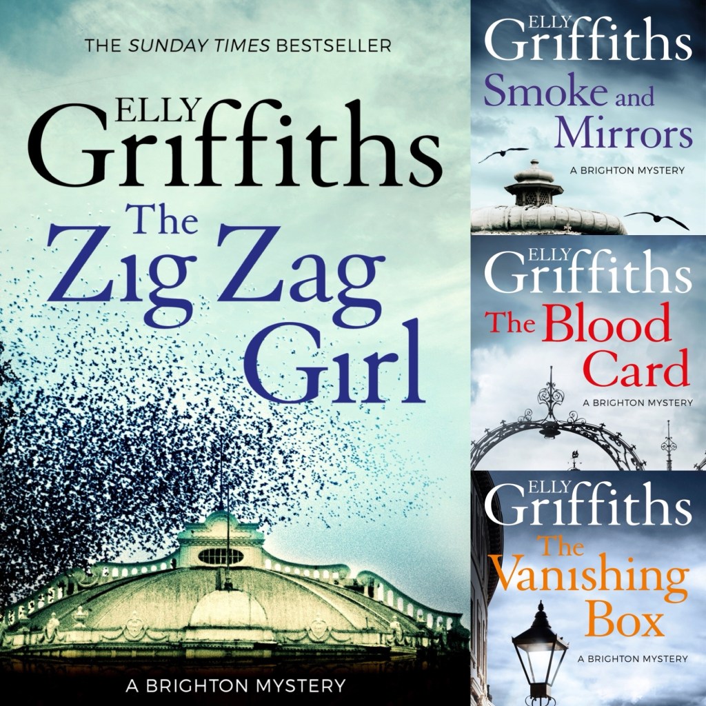 The seven books cover more than 16 years, so a lot changes in the characters lives as you follow them through – but also you see the world changing too: from post war austerity through to the swinging sixties and the changes in attitudes that that brought with them. Brighton also changes a lot during that time – with the rise of TV, the death of end of the pier variety and vaudeville and the coming of cheap package holidays. It’s a great time to set a book – and the mysteries are good too. I think they’re pretty good on accuracy too – I spotted one complete howler* in the last book but it’s the first time I remember finding one of those in all seven of the books, so I’ll let it off. Anyway, these are good very readable mysteries that you can get sucked into reading one after another – the way you can with Griffiths’ Ruth Galloway series too.