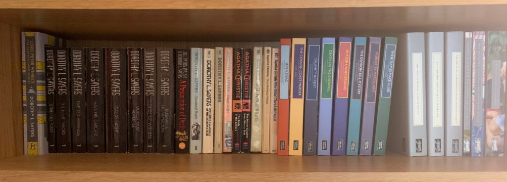 We’re getting to a point now where there aren’t a lot of nice neat and tidy shelves for me to show you before we get to what I think of as the Chaos Shelves. But then as I’ve been promising all year that I’m planning to reorganise some of the shelves and show you the results, then at least you’ll have seen the before and after when it happens. Anyway, I don’t imagine that this shelf will change much in any reorganisation. This is the bookshelf in the back spare bedroom. This has mostly been my office over the last nearly two years, but it’s also where any young people who might stay with us would sleep, so it made sense to use the shelves in there (left by the previous owners, who used it as their kids bedroom) for books suitable for any young people who might stay, and it also tends to be where the graphic novel end of my book collection ends up. And there are quite a few familiar books on here – recent BotW Piglettes, Bloodlust and Bonnet and The Unforgettable Guinevere St Clair and less recent BotWs The Good Thieves, Carry On and Pumpkinheads. There’s also various series that have come up at various points – like the Wells and Wong books that I own in paperback, the Lumberjanes and Fence graphic novels and the Tiffany Aching novels from the Discworld series. It’s starting to look a little full, but I’m not sure there’s anything here that I’m prepared to get rid of, so when it gets full it’s likely to be a case of moving stuff to other places rather than a rationalisation situation…