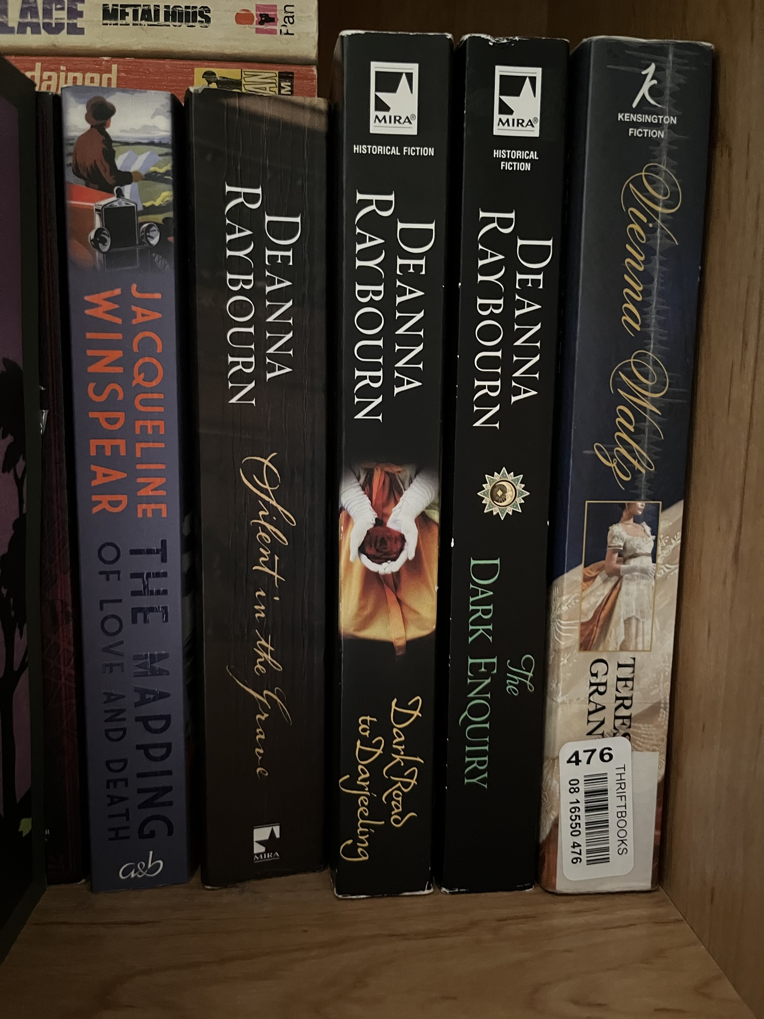 And the even better news is that they’re all on some form of offer at the moment on Kindle – you can get Silent in the Grave for 99p as you can with books three and four, with books two and five at £1.99 so basically you can get the whole series for under £7. The picture on Kobo is somewhat similar – although they don’t seem to have book three as far as I can see. Either way, it’s cheaper than trying to buy hard copies because it looks like they’re somewhat out of print. I’m also somewhat annoyed that I could only track down three of the five for the photo because I know I own them all, and it bugs me when I can’t track books down on my shelves when I want to!