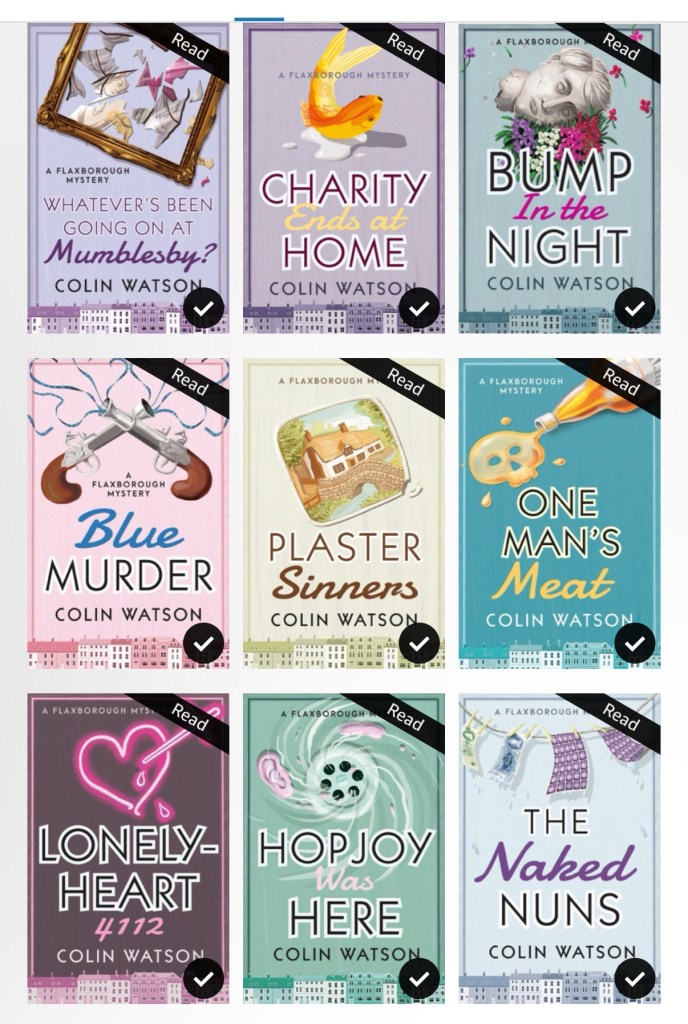 Flaxborough is a sleepy English market town, in the sort of Lincolnshire-East Anglia part of the world. Our detective is Walter Pirbright, a CID inspector who is polite and decent and solid, if not the cleverest and most exciting detective you will ever read. But his down to earth normalcy means that there can be some quite outlandish happenings that go on around him without it seeming ludicrous. As you go through the series other regulars join him – including Miss Teatime, who arrives as a conwoman but nearly gets herself murders and yet still decides to stay in town. They also do a nice line in split point of view which means that the reader knows more than the police do, which is a lot of fun. Colin Watson apparently took a lot of inspiration from real people who lived in his town and if you’ve ever lived in a small town (or large village) you’ll be familiar with the idea of the local characters complete with their idiosyncrasies- and here they are amped up to eleven!