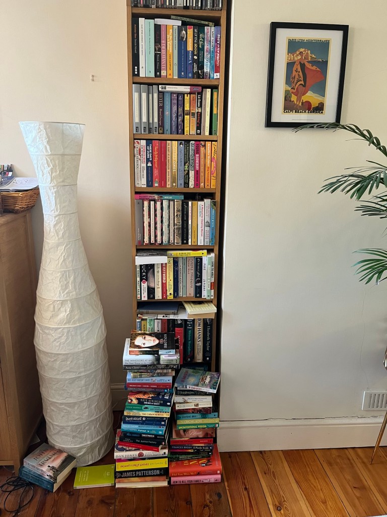 I’m back with another stack of books that I’ve managed to acquire some how. There’s two pre-orders here – the new Vinyl Detective and Steven Rowley’s The Celebrants, which has been out in the US for ages but has only just got here. Then there’s my two purchases on the way to Portugal – which were When Grumpy Met Sunshine and Death at the Chateau. Then there’s the books I brought back from Portugal. Seven Scamps was a belated birthday gift and the two Julia books are loans (I think!) from the same friend. The Patricia Wentworth, Susan Elizabeth Philips and Jenny Colgan were acquisitions from the book exchange in Portugal. And then at the very back is Delayed Rays of a Star which was an impulse purchase second hand. So just a few then…